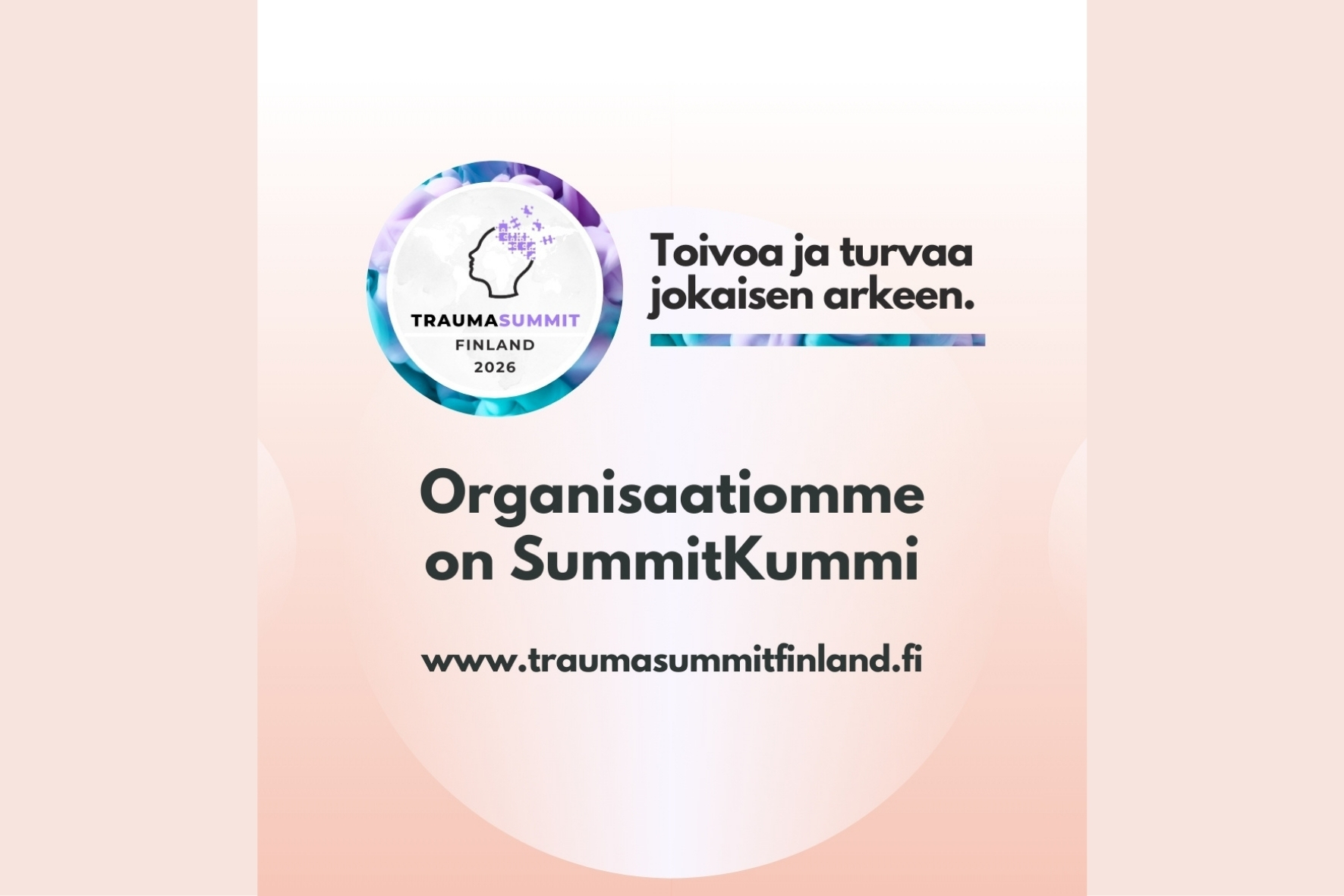 Meillä on hienoja uutisia jäsenillemme: Suomen Kirjallisuusterapiayhdistys ry on SummitKummi! Se mahdollistaa koko yhdistyksen jäsenistölle pääsyn Trauma Summit Suomi 2026 -tapahtumaan 16.–18.4.2026.